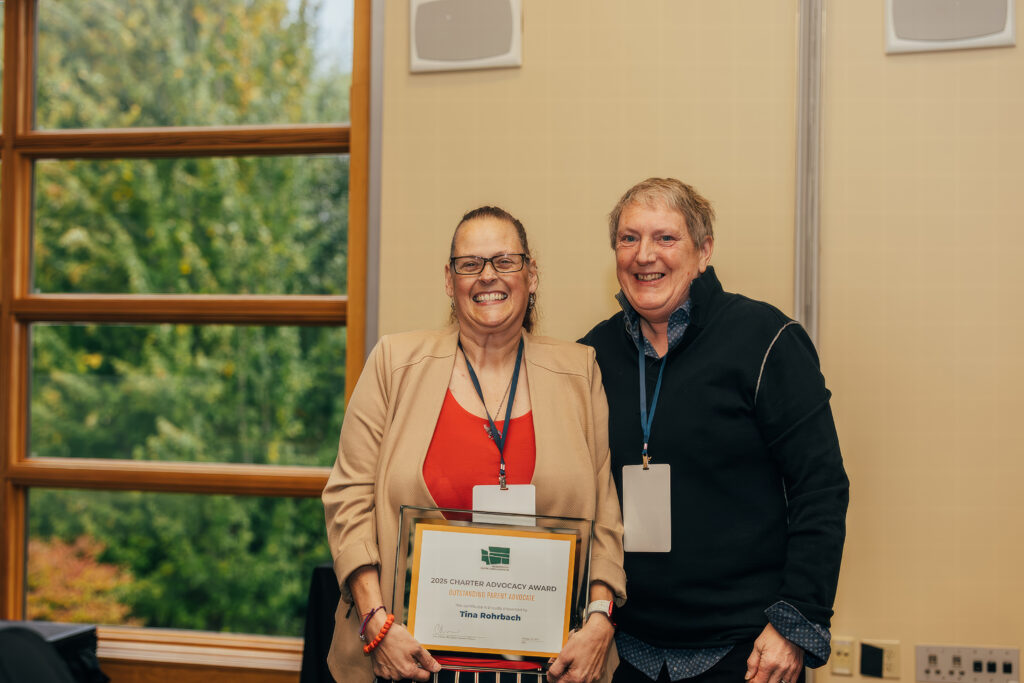 Congratulations to charter public school parent Tina Rohrback, who in October 2025 received the Outstanding Parent Advocacy Award from WA Charters. These annual awards offer an opportunity to shine a light on the incredible parents, students, alumni, and leaders in our community who play an instrumental role in advocating for equitable public education.